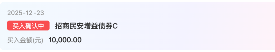$招商民安增益债券C$+10000,群里姐妹推荐给我的一只基,最近连续4天收大蛋,昨天收了22个,收益非常的突出,我看了一下我也决定今天大额加仓一些,这只基属于“固收+”策略,大部分资产投债券求稳,同时能拿最多20%左右的仓位买股票增强收益,所以波动会比纯债基大点,但预期收益也更有空间,股票部分持仓均衡有利于控制风险。业绩方面,近一年收益率达到9.92%%,作为一款“固收+”产品表现不错。基金经理在债券和权益资产配置上经验丰富,会根据市场变化调整仓位。当前经济环境下,债市有望提供稳定基础,而股市如果企稳回升,基金的权益部分还能争取一些增强收益,我今天先建仓一些。