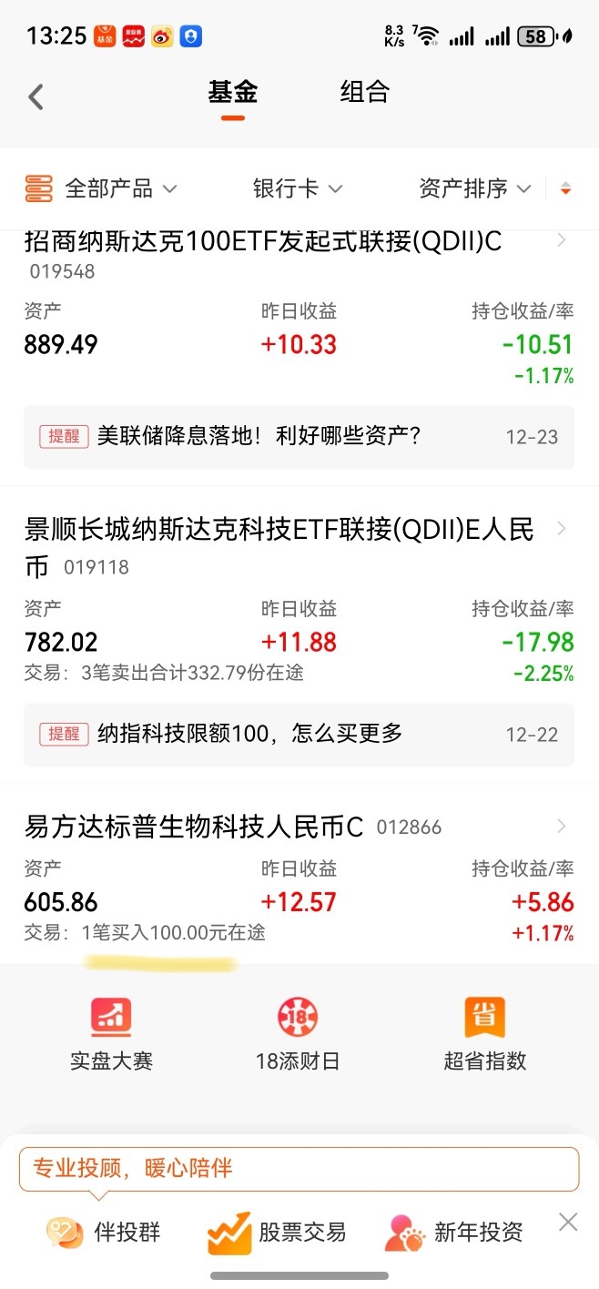 至于目前持续的某个纳斯达克100指数qdll基金,暂时不考虑选择加仓操作的打算的。