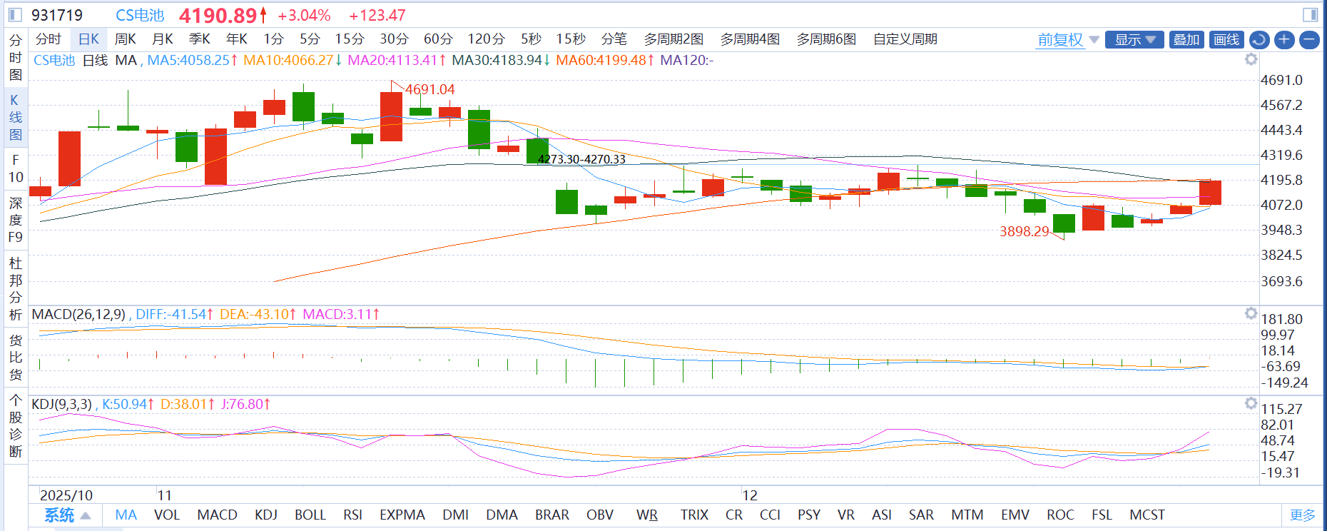 电池板块:今日最强! 能源金属、电池板块放量大涨,一根长阳直接突破了长期的盘整平台,MACD金叉红柱大幅放大。这是右侧启动的信号!趋势来了挡不住。资金从高位科技切出来,第一选择就是低位的新能源。麦爸选择站稳不动,躺平!