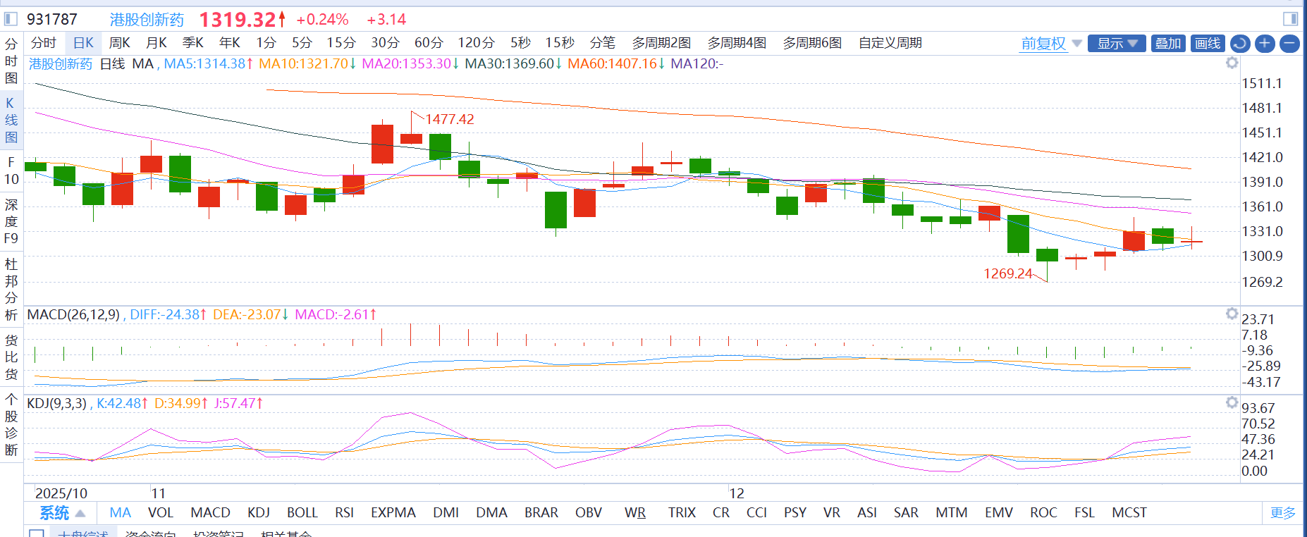 港股创新药:虽然今天微涨,KDJ金叉,MACD即将翻红,底部特征明显。医药板块补涨需求强烈,现在的位置安全边际很高,输时间不输钱。麦爸持仓不动,继续看涨!