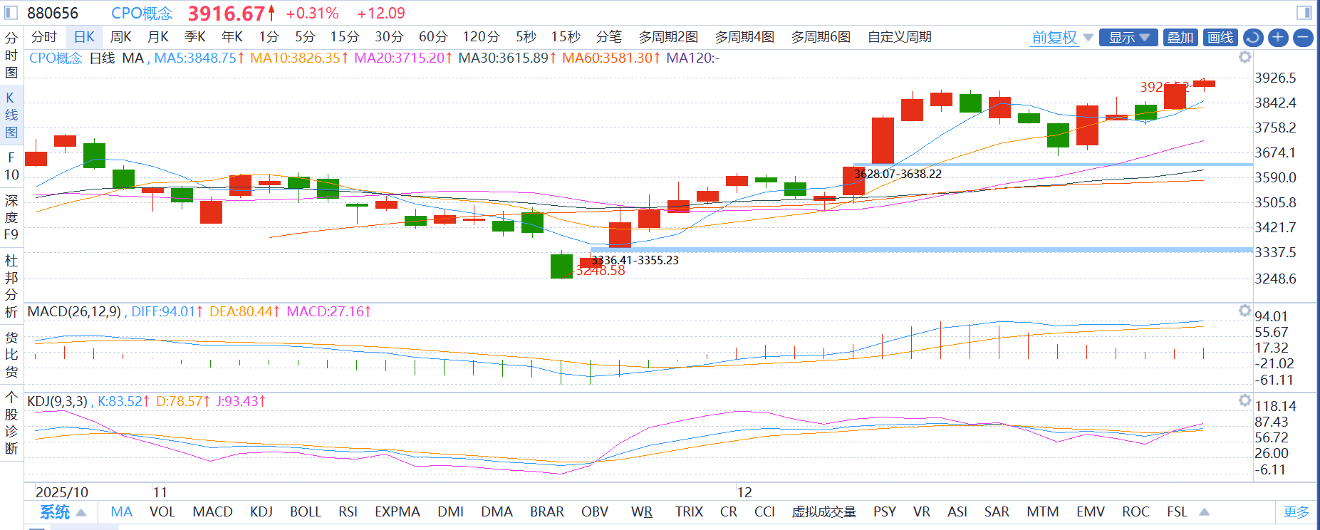CPO和人工智能:昨天大涨,今天居然没有获利回吐,也是强!。只要不破5日线,上升通道就没坏。MACD红柱依然健康。这种核心主线,最忌讳频繁换股。麦爸持仓不动,继续看涨!