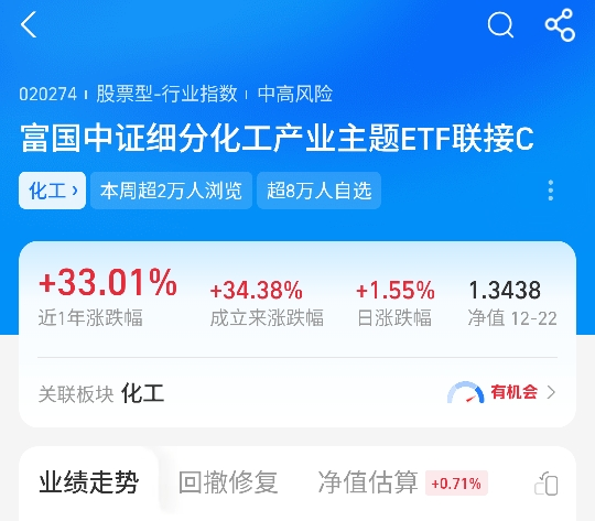 $富国中证细分化工产业主题ETF发起式联接C$ 化工板块,今天估值上涨0.71%,继续连涨了