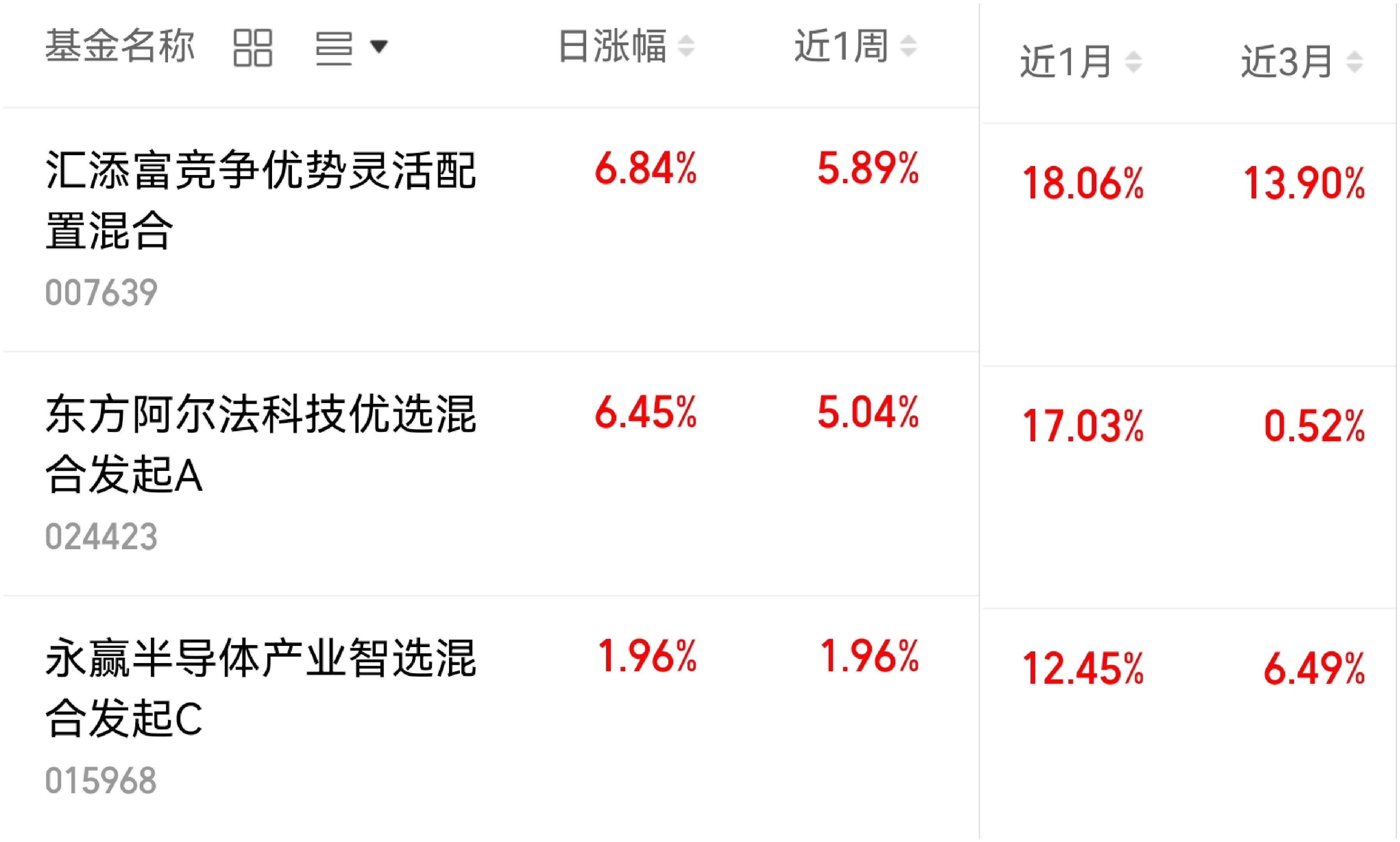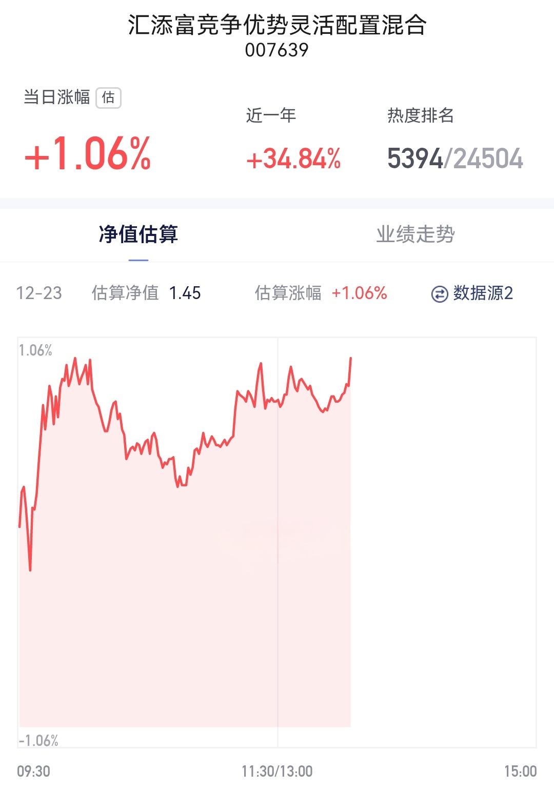 拿下,果然是强者恒强,$汇添富竞争优势灵活配置混合(OTCFUND|007639)$实时上涨1.06%,昨天刚斩获6.84%的日涨幅,拿下全市场第一。这都得益于它的持仓聚焦半导体设备,锐度更强。近一周涨幅5.89%,近1月收益18.06%,同类优秀等级。