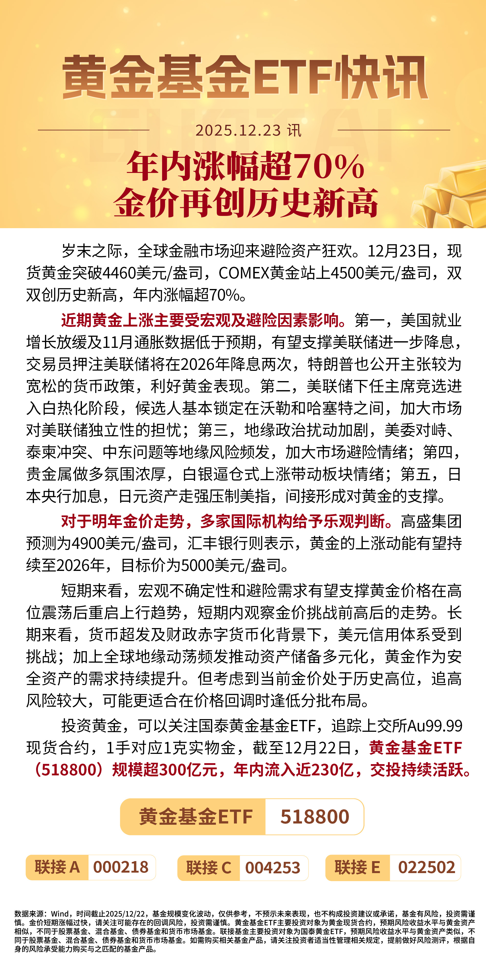 相关产品:$国泰黄金ETF联接C(OTCFUND|004253)$ $国泰黄金ETF联接A(OTCFUND|000218)$ $国泰黄金ETF联接E(OTCFUND|022502)$