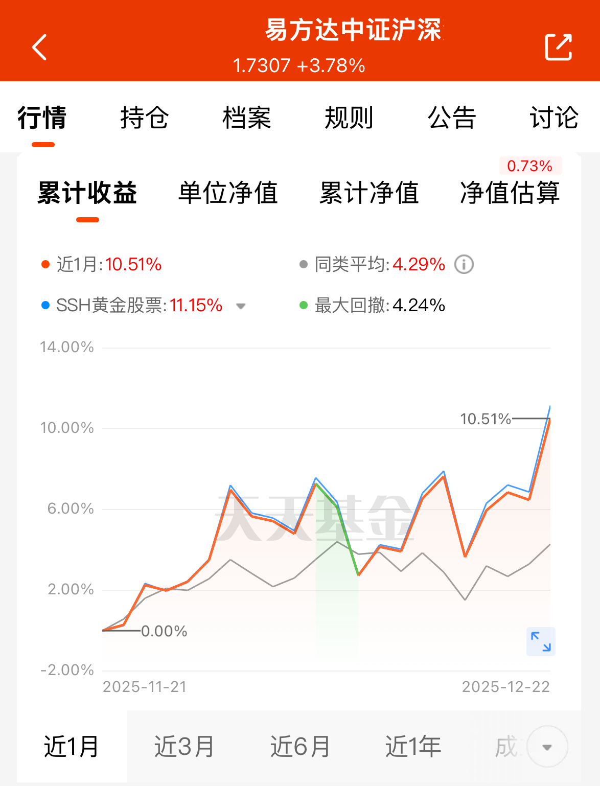 黄金已经红的我人都麻了!这块的逻辑,我认为最主要的就是美联储宽松周期下,带来的货币贬值交易,金银铂钯齐现飙升。此轮行情显然由美联储宽松政策及相关债务货币化担忧所触发。毕竟,美联储主席鲍威尔8月22日在杰克逊霍尔的鸽派讲话以及本月美联储最新的降息,都是贵金属起飞的重要催化剂。接下来我的策略不变,继续持有$易方达中证沪深港黄金产业股票指数发起式C(OTCFUND|021363)$,近一月10%,拿住了!