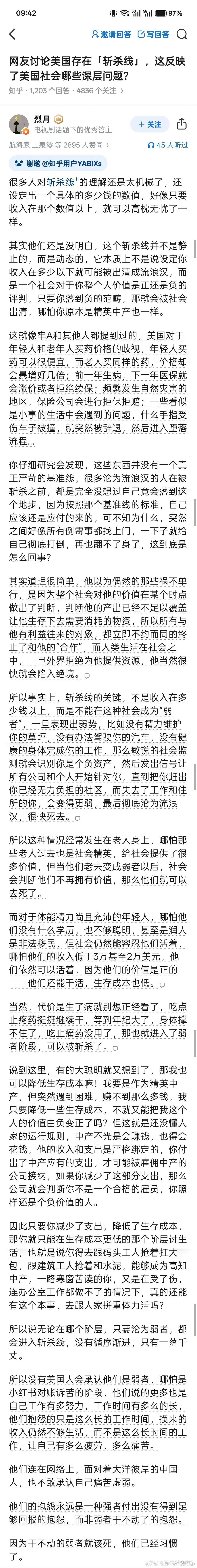 村上春树在《舞舞舞》里面提到一个概念,叫“高度发达的资本主义社会”,所谓的斩杀线其实是新自由主义模式下的美国式资本主义。