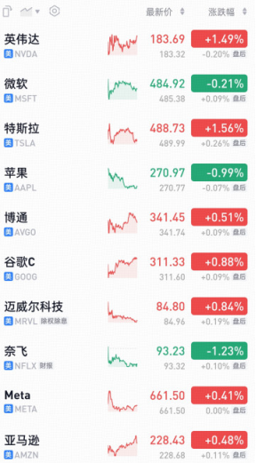 【重仓涨跌】昨日华宝纳斯达克精选前十大重仓股7涨3跌,美元兑人民币中间价↑0.03%。(重仓股涨跌情况仅供参考,不代表当前基金业绩表现,还请以每日更新的实际基金净值为准)