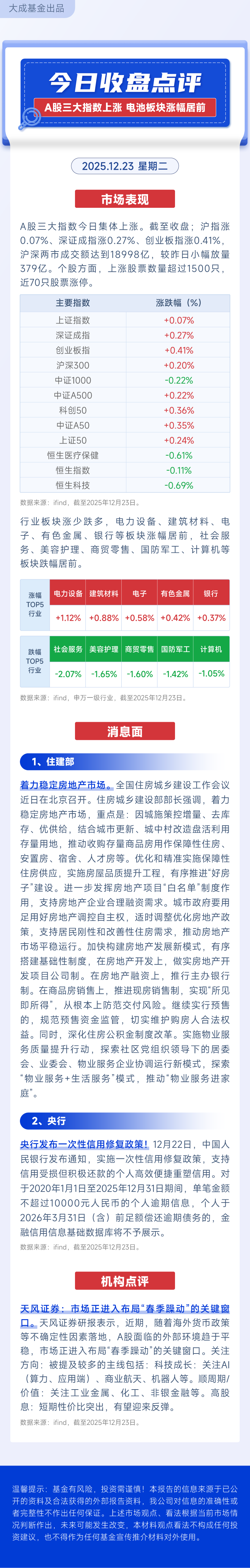 收盘点评:A股三大指数上涨,电池板块涨幅居前