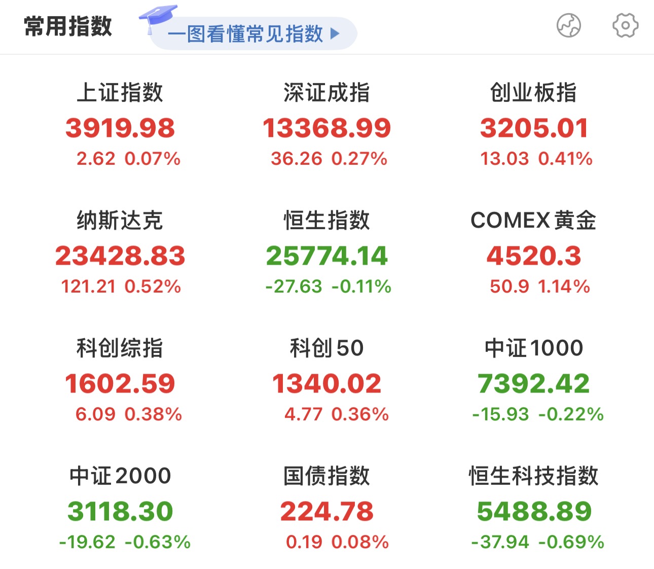 今日A股三大指数小幅收涨,但行业板块涨少跌多,能源金属、电池、玻璃玻纤等板块涨幅居前;港股收盘小跌,受到IPO吸血及海外流动性双重影响,依然在震荡期;中债表现较好,有消息称财政部就明年国债发行事宜开会;黄金、白银等贵金属再创新高。
