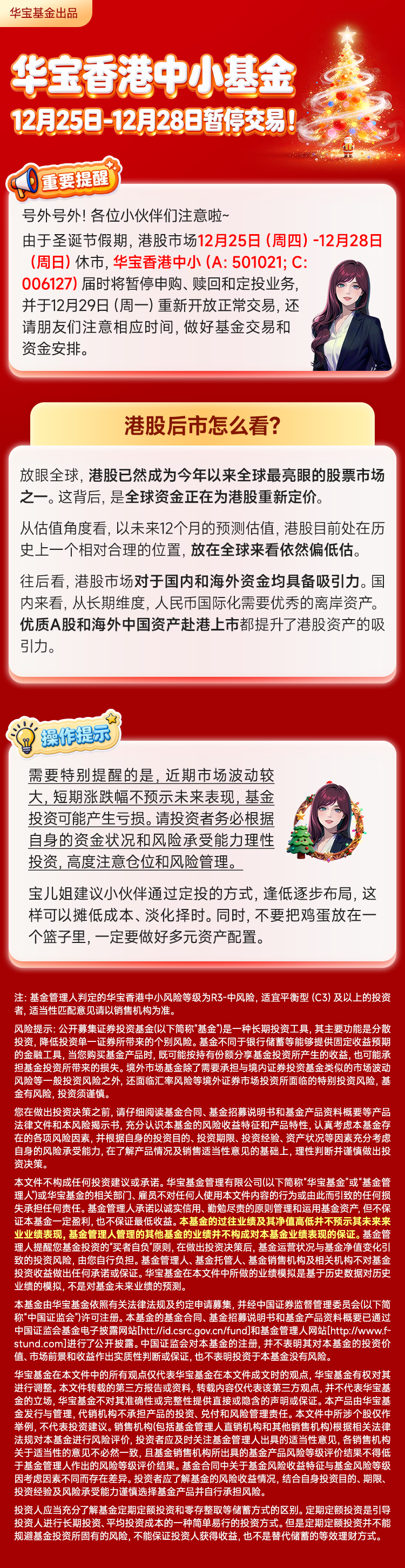 【重要提醒】华宝香港中小基金12月25日-12月28日暂停交易!