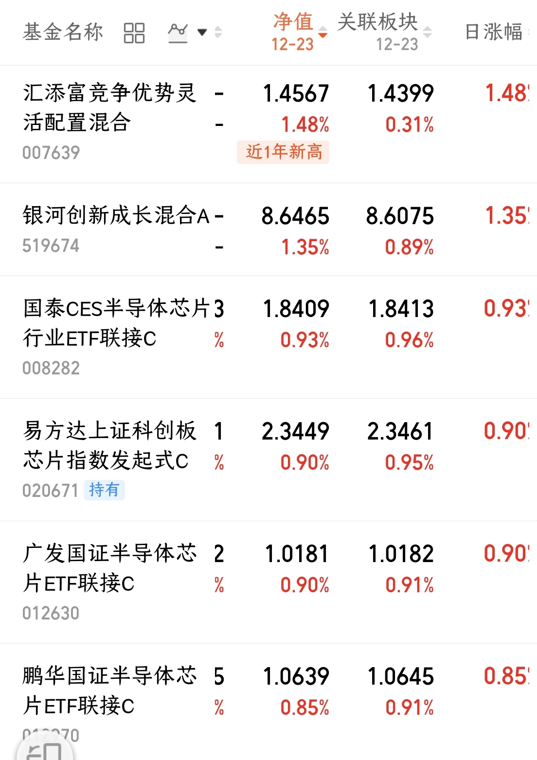 $汇添富竞争优势灵活配置混合(OTCFUND|007639)$昨天就上涨全场最多,今天继续上涨1.48%