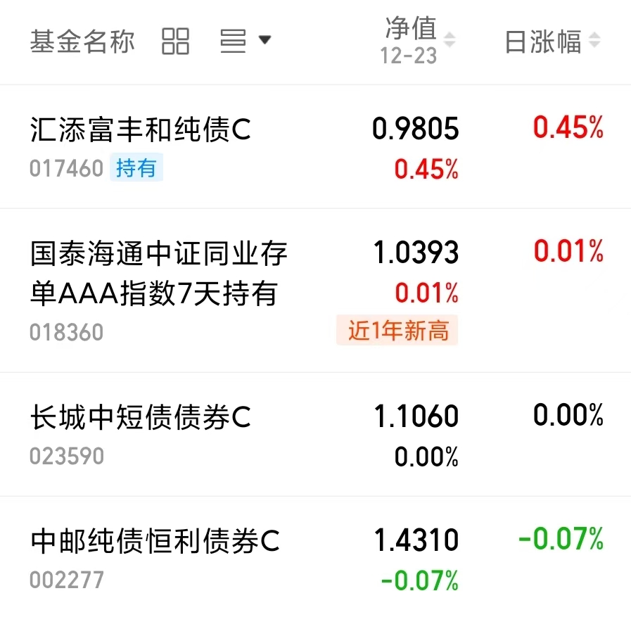 $中邮纯债恒利债券C(OTCFUND|002277)$今天丢7个蛋。