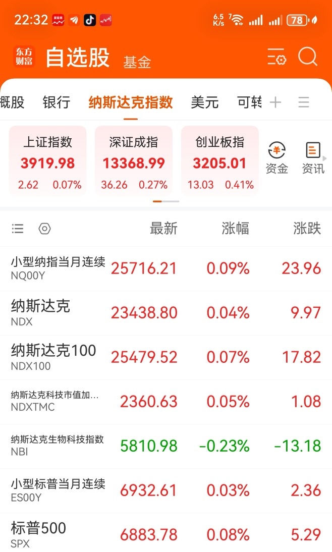 在今天晚上22点半之后,观察美股纳斯达克指数、纳斯达克100指数、纳斯达克科技市值加权指数,在开盘之后分别是微涨的。