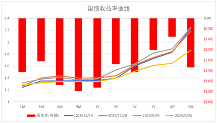 央行重启14天逆回购,释放呵护跨年资金面信号。最终R001和R007分别较前周上行0.4BP和上行0.7BP。