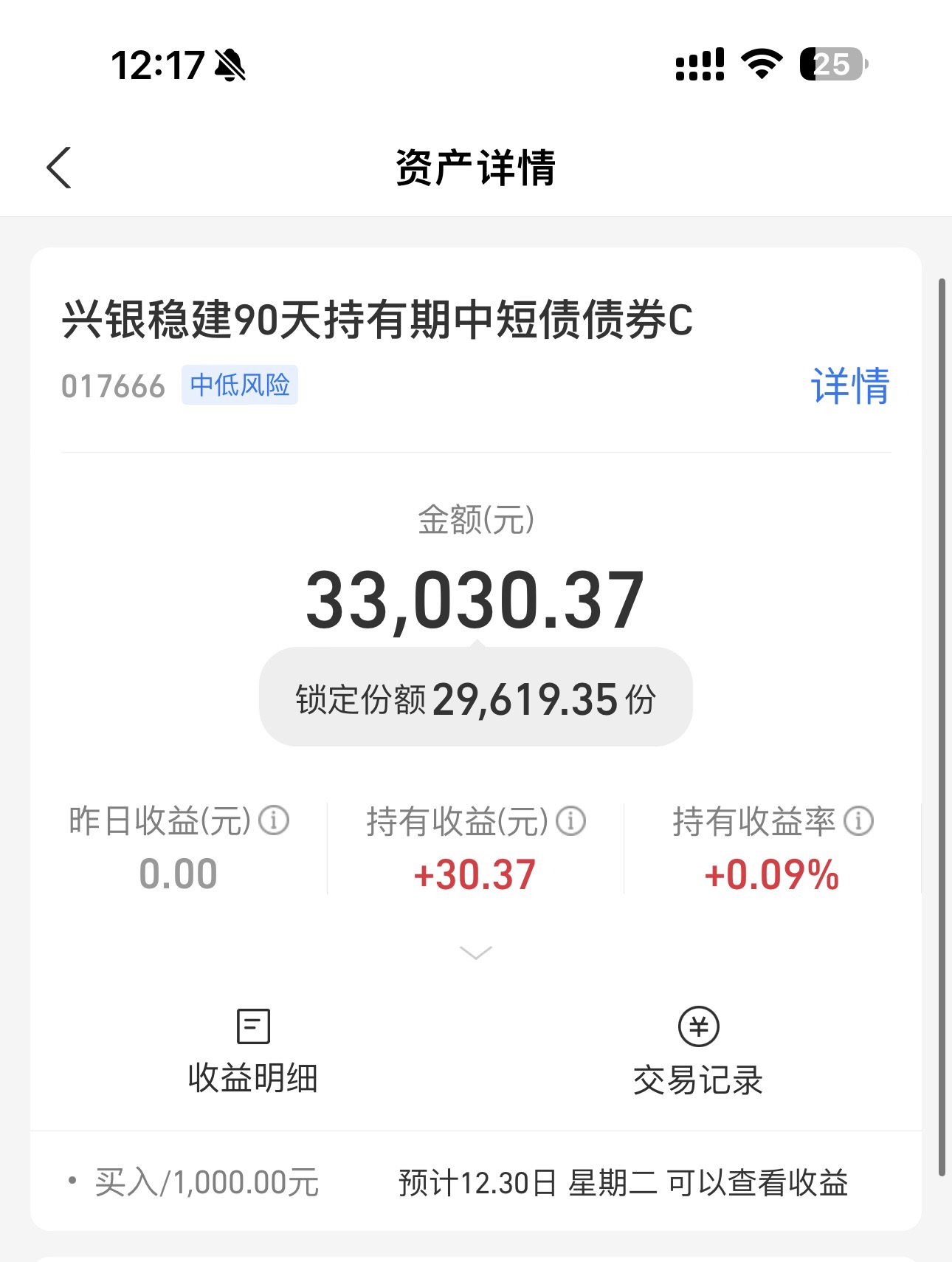 $兴银稳建90天持有期中短债C$ :小王今日继续定投上车1000,在近期大盘已经7连涨,所以我觉得回调也快到了,这时候也让我更加坚定了布局稳健型纯债基金的想法,这只基金正是我近期着重看好的底仓配置之选,核心就是我看中它兼具稳健与收益的特质。从持仓结构来看,该基金信用债占比116.1%、利率债占比7.57%,两类持仓的合理搭配,能够轻松实现风险对冲。更值得一提的是,它的收益曲线长期保持平缓向上的走势,我持有体验格外安心。再叠加今年纯债基金后续尚存补涨空间的判断,我选择趁当下继续加仓布局,期待后续能够稳稳收获收益,小王今日准备继续定投上车1000