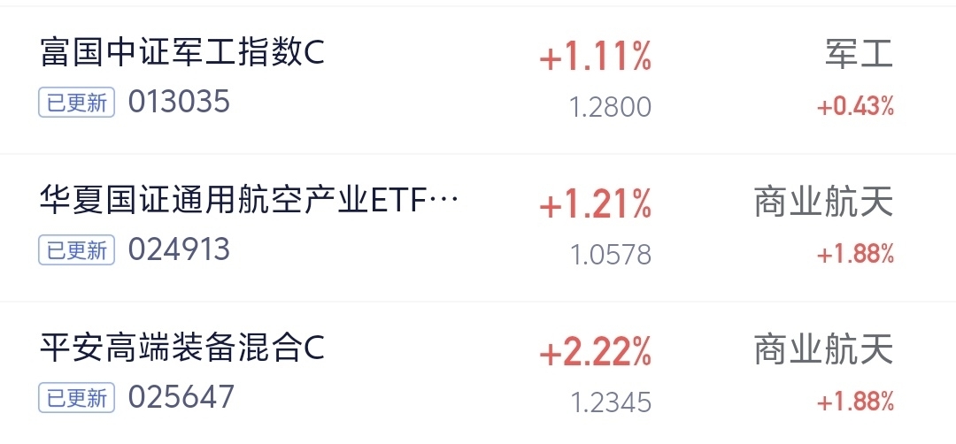 今天军工航天赛道还是不错,虽然中间有点回落不过好在后续又拉升了不少,一起去看看最新净值,来。