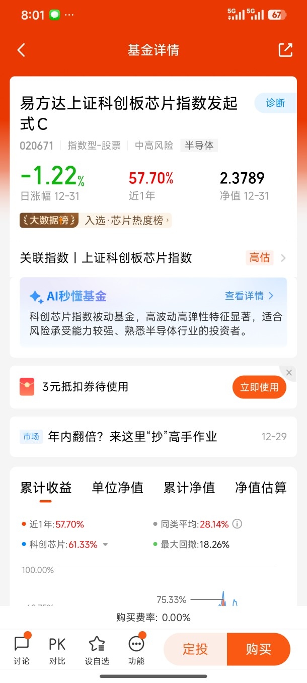 #我的年度投资操作# 2025年我最失策的操作是定投了消费基金,其净值一直往下掉,即使消费电子上涨也和我的基金无关。实在是扶不起的阿斗。真心希望我的消费基金能够一飞冲天,为我的投资岀把力!@易方达基金