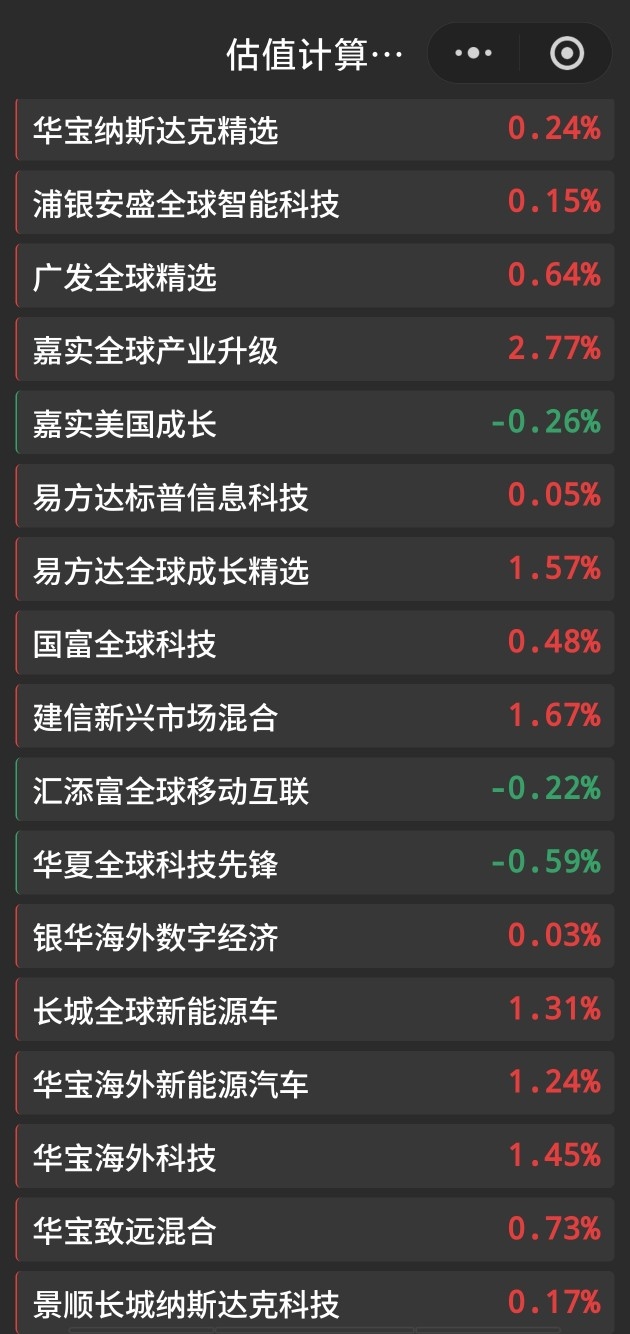 部分基金估值如下: