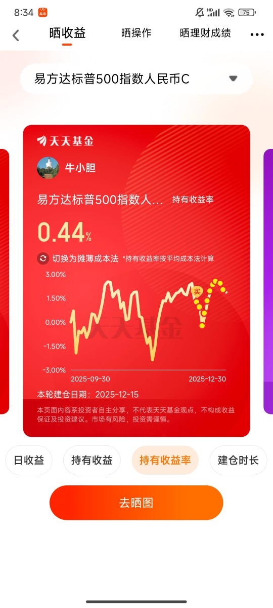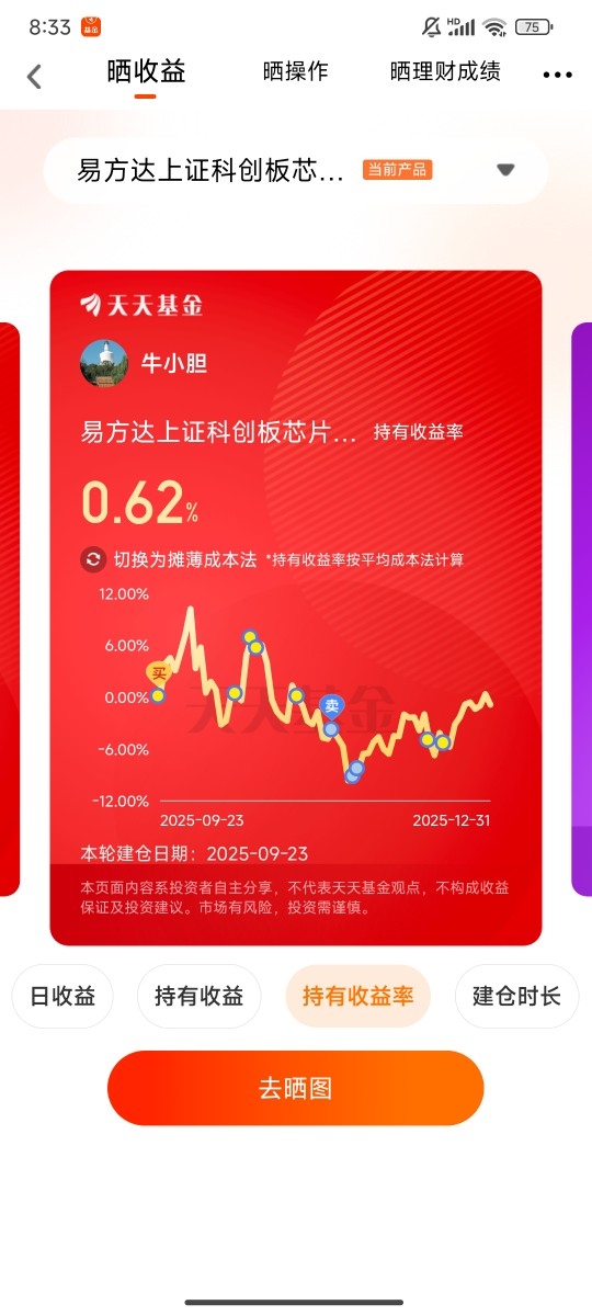 现在回想起来,那段时间确实是最考验人的时候。看着账户里的盈利一点点增加,说不心动是假的;看着身边有人因为提前赎回赚得盆满钵满,说没有动摇也是假的。但我始终记得自己年初定下的规矩,也清楚自己买入这只基金的初衷——它是我的防守端标的,不是短线套利的工具。所以,我没有跟风清仓,也没有盲目加仓,只是在它阶段性冲高、净值涨幅触及我预设的12%止盈线时,果断卖了一小笔,大概是总持仓的10% 。