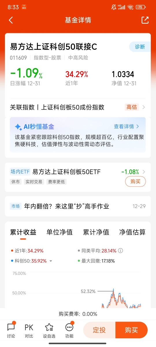 #我的年度投资操作# 2025年投资复盘:最得意的不是52%收益,是hold住易方达黄金ETF联接A的定力$易方达上证科创板成长ETF联接发起式A$