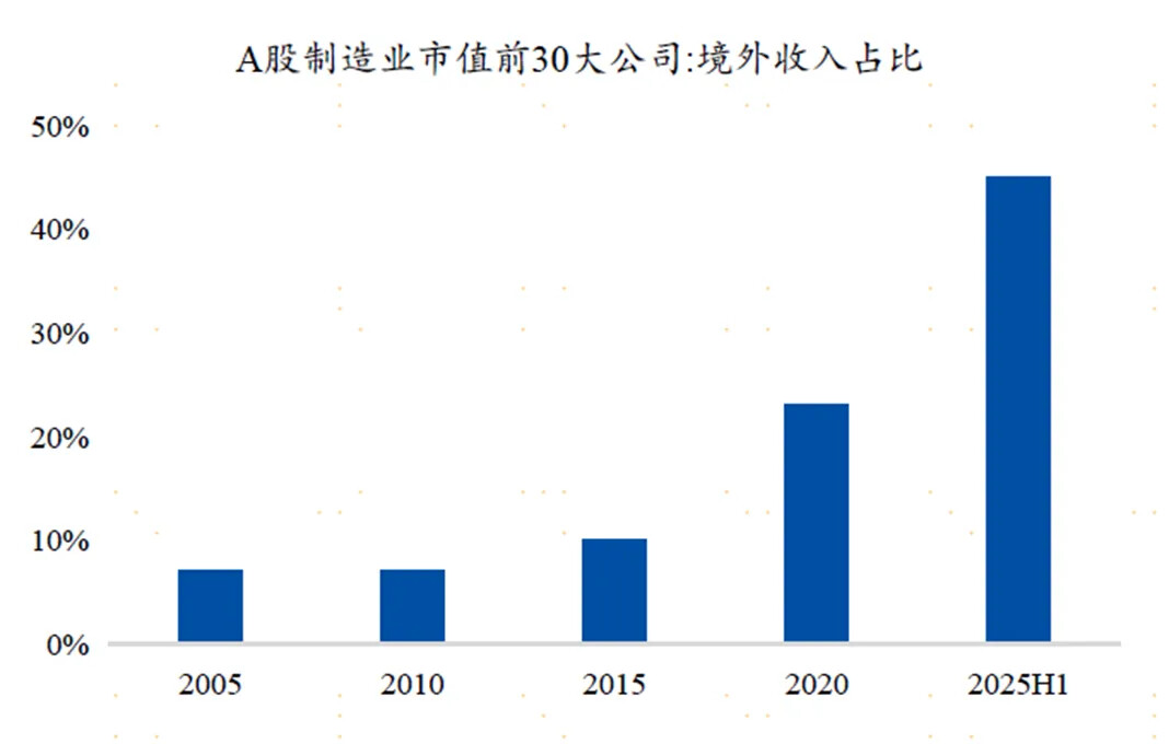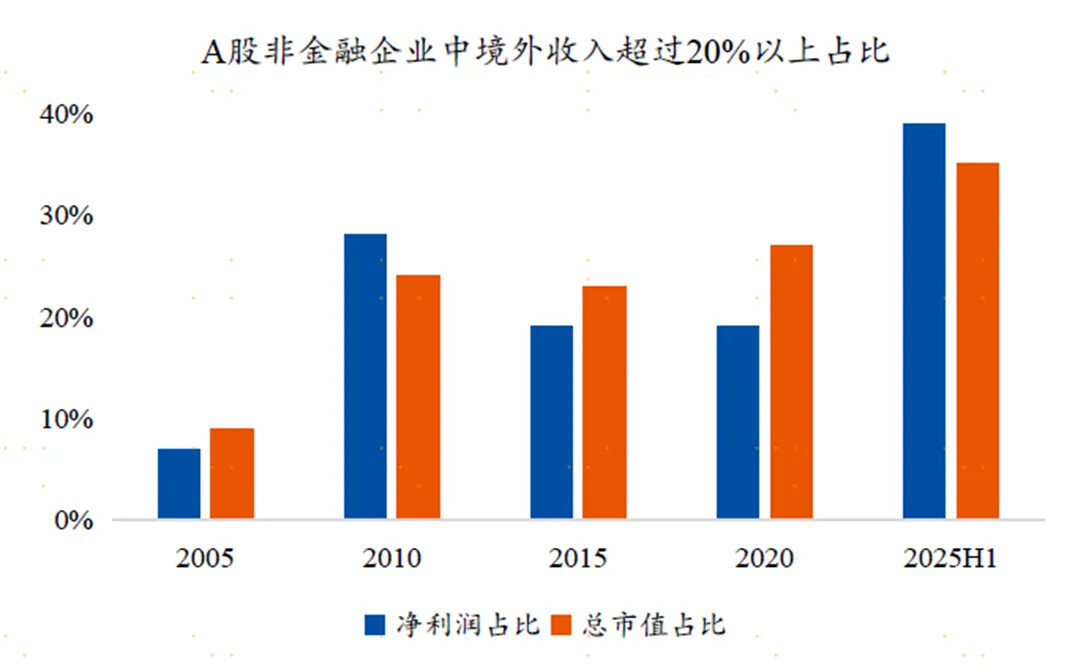 今年大家越来越意识到中国的经济和企业,在全球的产业链中有极强的竞争优势,A股的上市公司中境外收入的占比现在已经非常高了,带来一个很大的变化,全球的经济和产业对于中国的经济和产业产生了很大的影响,以往我们对于经济的评估往往是依托于“内需和地产”的变化,但是未来我们越来越依托对于全球的经济和产业来做更多的分析。