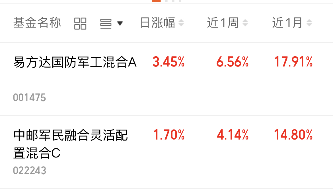 今日市场延续涨势,商业航天板块强势领涨,国际局势紧张叠加政策与订单双重利好,成为核心驱动。$易方达国防军工混合A(OTCFUND|001475)$聚焦军工核心赛道,昨日大涨3.45%跑赢同类,还迎来四连涨行情。军工行业周期性与成长性兼具,这只基金也因此具备十足的上涨动力。