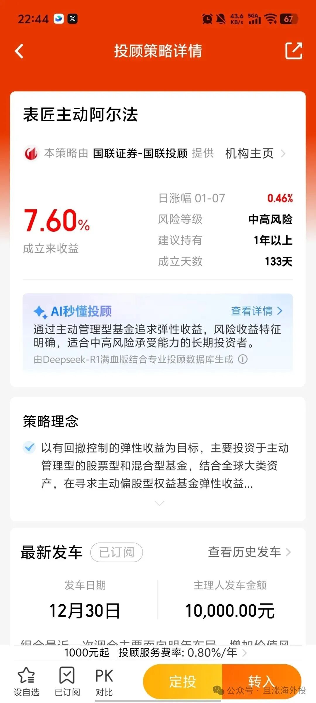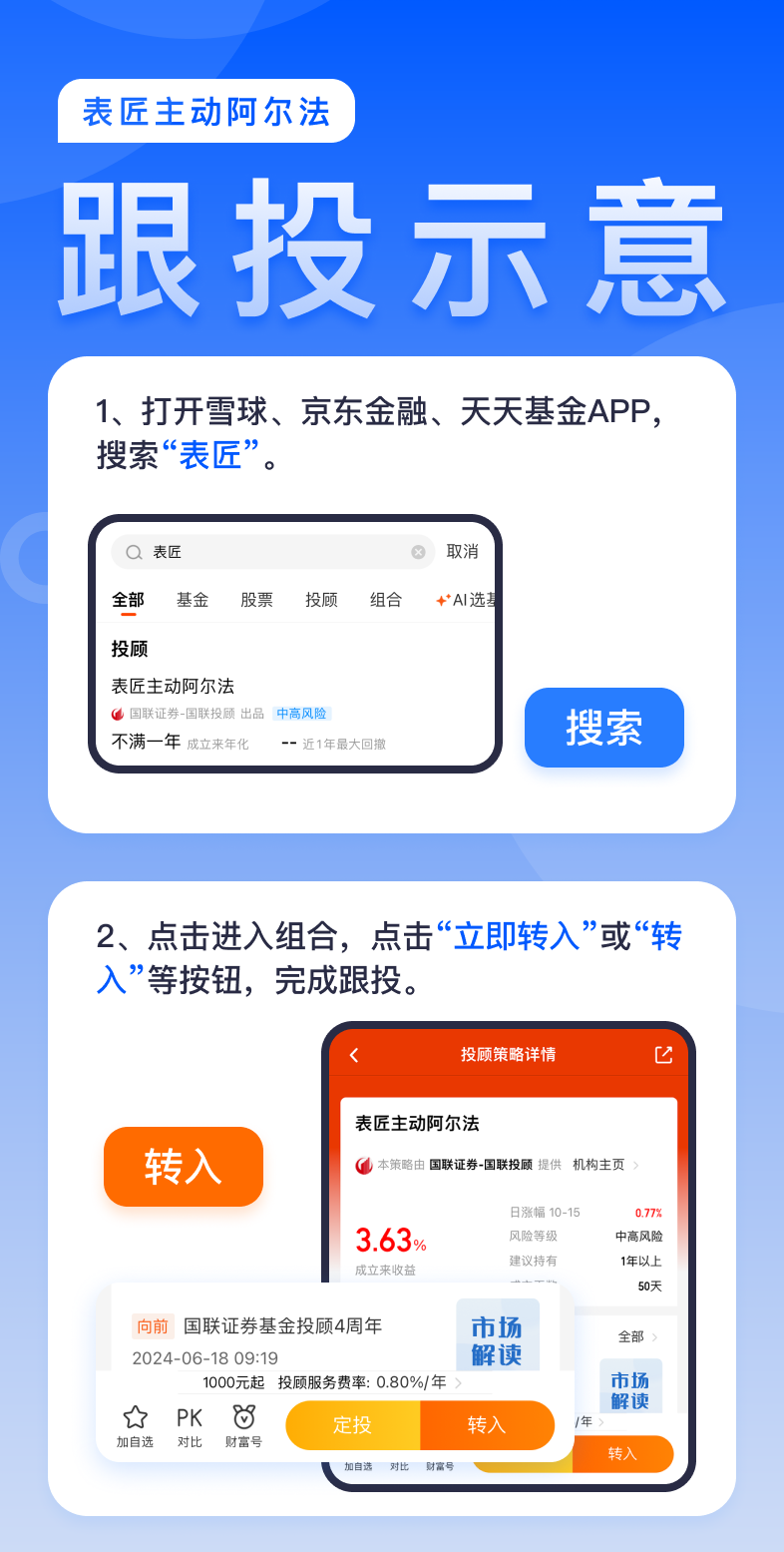 表匠主动阿尔法,近两周的净值修复非常快,并且已经创了新高。想要跟投的投资者,可以查看下方的跟投示意图。