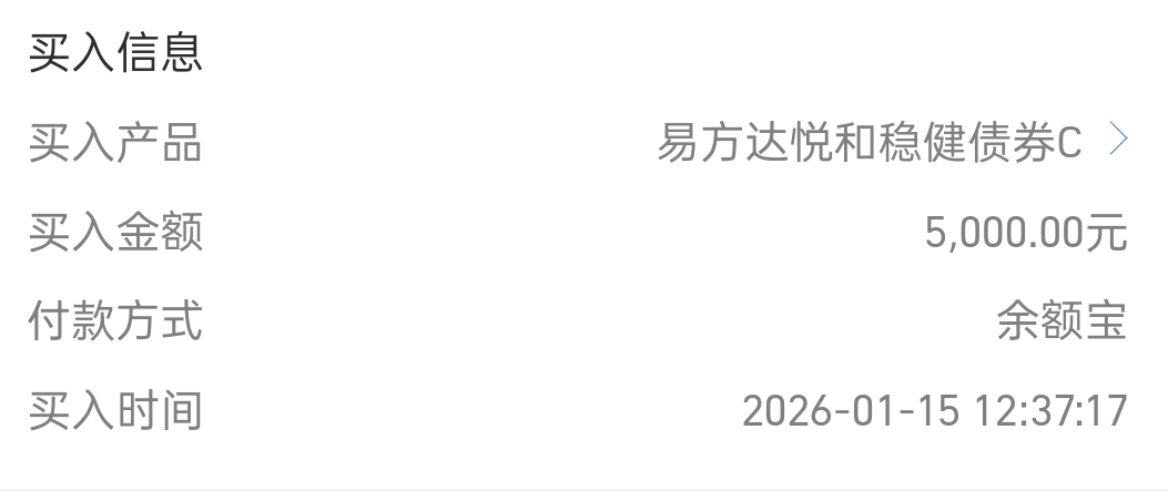 $易方达悦和稳健债券C$ 加仓5000元!
