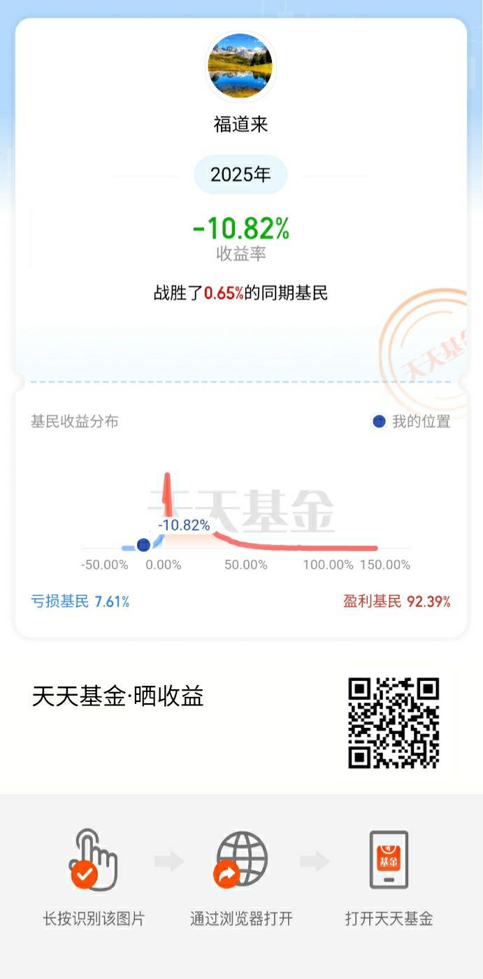 2025年,我的收益情况是亏损10.82%,跑输了沪深300指数,我的超额关键词是:耐得住亏损,将定投进行到底,直至赢利!