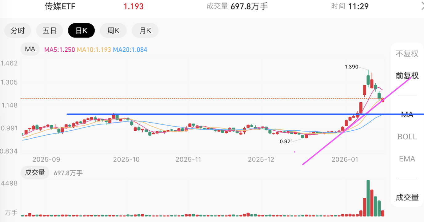 传媒(游戏):板块已突破长期箱体进入主升浪模式,目前K线沿布林线上轨运行,展现出极强的多头攻击性。 近期受成交量萎缩影响出现技术性回撤,重点关注能否在支撑位放量企稳,只要不跌破关键水位,上涨斜率依然可期。
