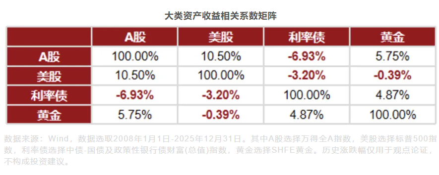 FOF的核心价值,在于其贯穿始终的多资产配置理念。从长期市场表现来看,股票、债券、商品、海外资产等大类资产之间普遍存在低相关性,而FOF正是精准利用了不同资产间的这一特性及对冲效应,追求分散单一资产波动带来的非系统性风险。