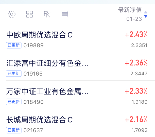 中欧周期优选,今晚更新涨了+2.43%