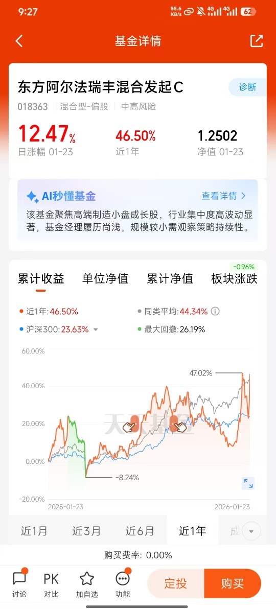 看着这只基金的涨幅和排名,能感受到基金经理对商业航天板块的研究很深入,跟着专业的