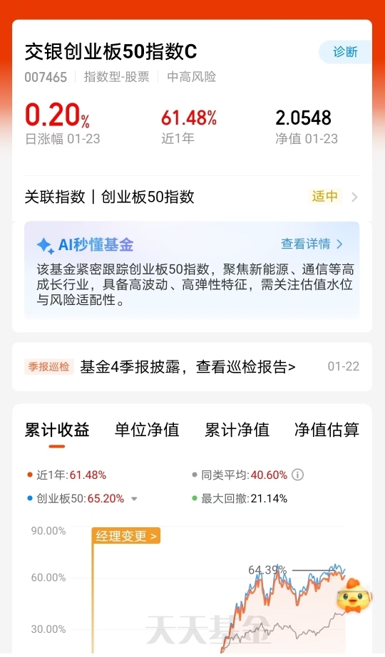 央视财经关注到国内新能源技术迭代加速、AI商业化落地提速,科技与新能源板块进入上行周期。交银创业板50锚定成分股,以科技、新能源为核心布局。近一年收益61.48%,日涨幅0.20%,为捕捉新兴产业红利提供简洁高效的配置思路。我果断关注。