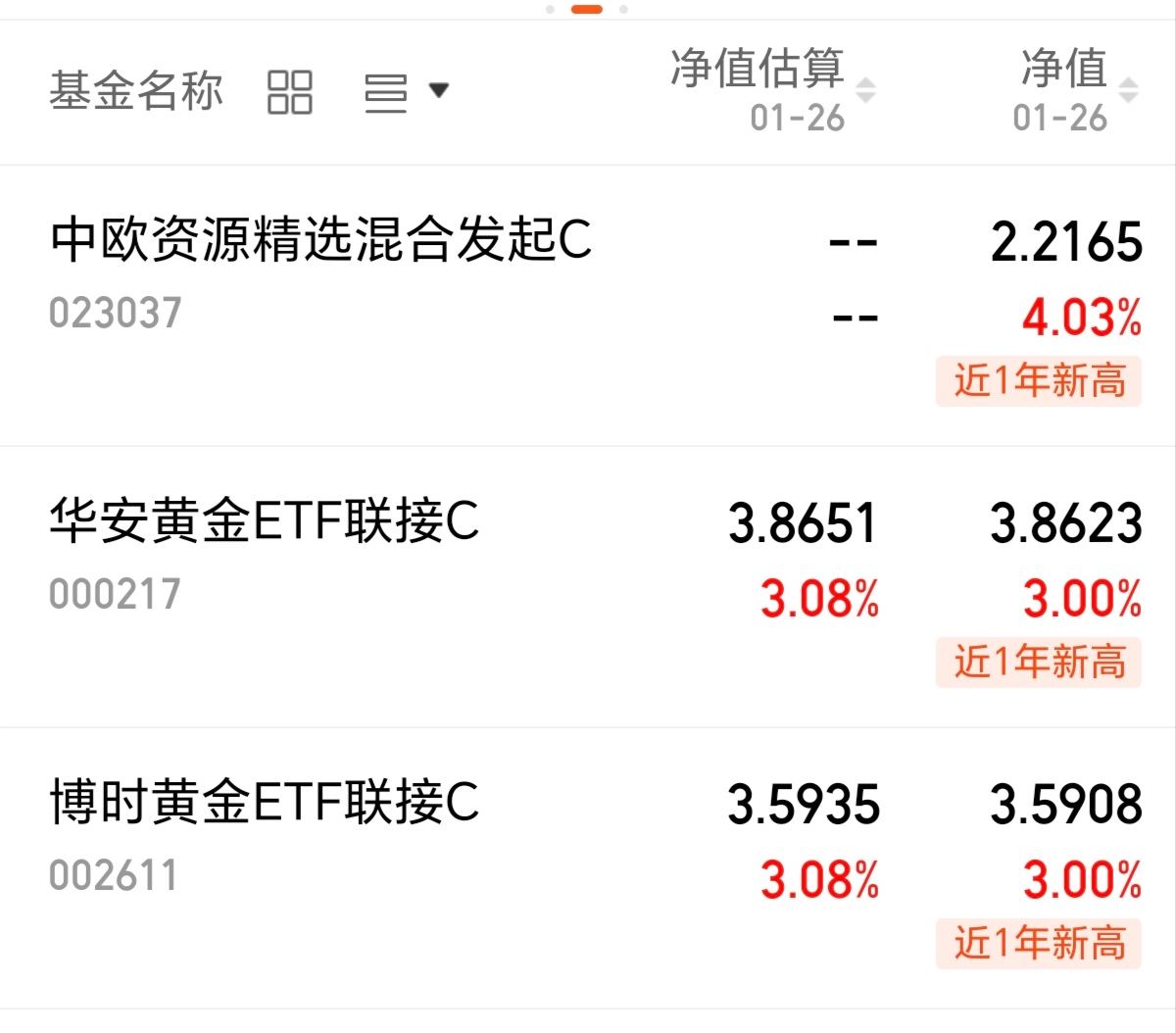 $华安黄金ETF联接C(OTCFUND|000217)$上涨3%