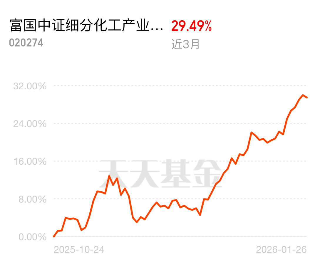 #AI助手Clawdbot爆火!AI应用迎布局机会?# 近期三个月涨了29%,跑赢多数同类了大多数同类基金,这收益说实话挺出乎意料的。富国中证细分化工产业主题ETF联接C跟踪的是中证细分化工产业主题指数,覆盖的都是化学原料、化学制品这些领域的龙头公司。之前一直觉得化工是传统行业,没想到现在景气度在回暖,开工率上来了,产品价差也在反弹。看到近一周还涨了3.6%,比同类展示更稳,感觉它对行业节奏抓得挺准。我这部分配置不算重,但持有体验确实比预想中顺畅,波动没想象中大,反弹力度却挺实。