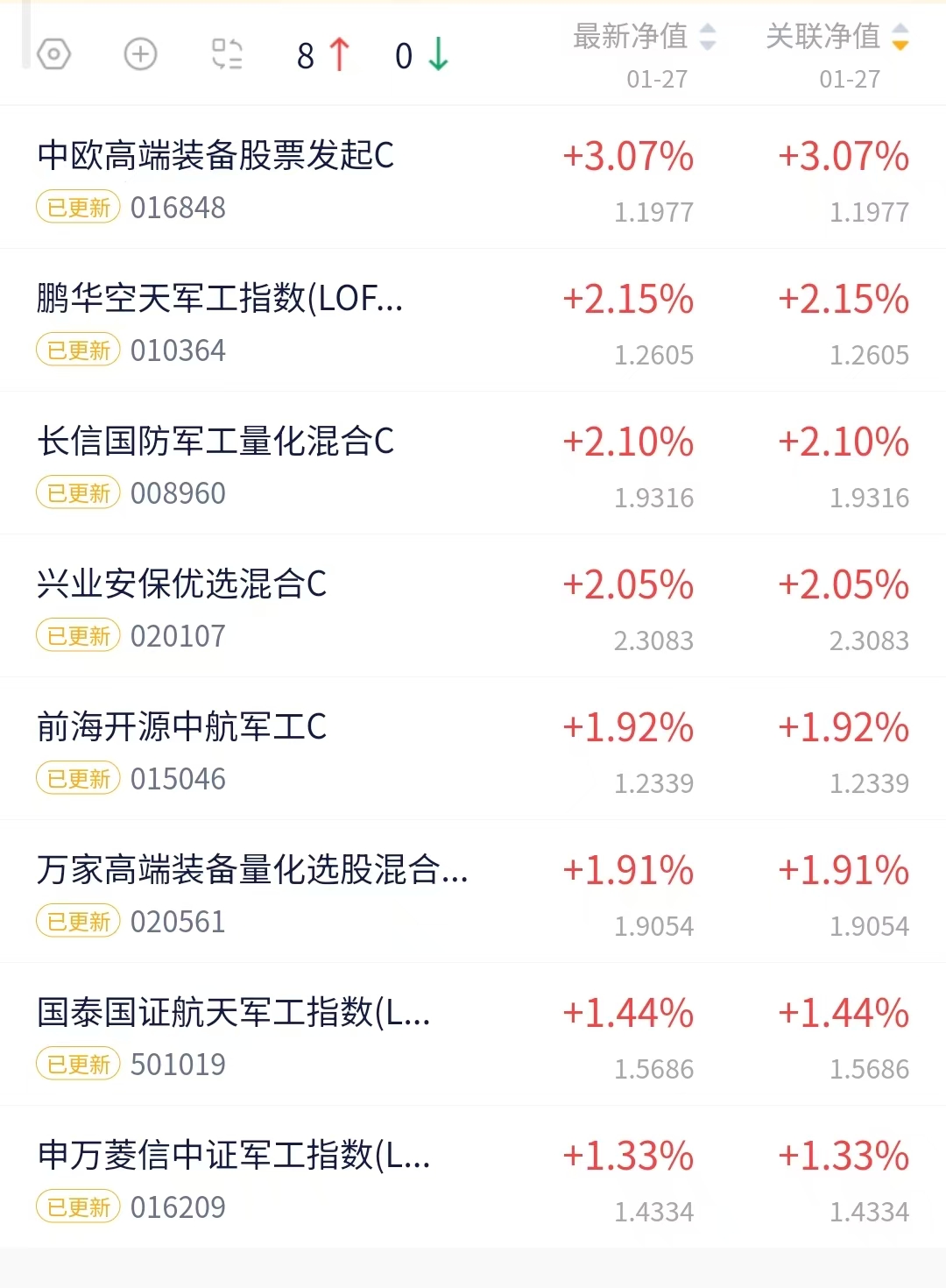 $前海开源中航军工指数C(OTCFUND|015046)$今天收涨1.92%。