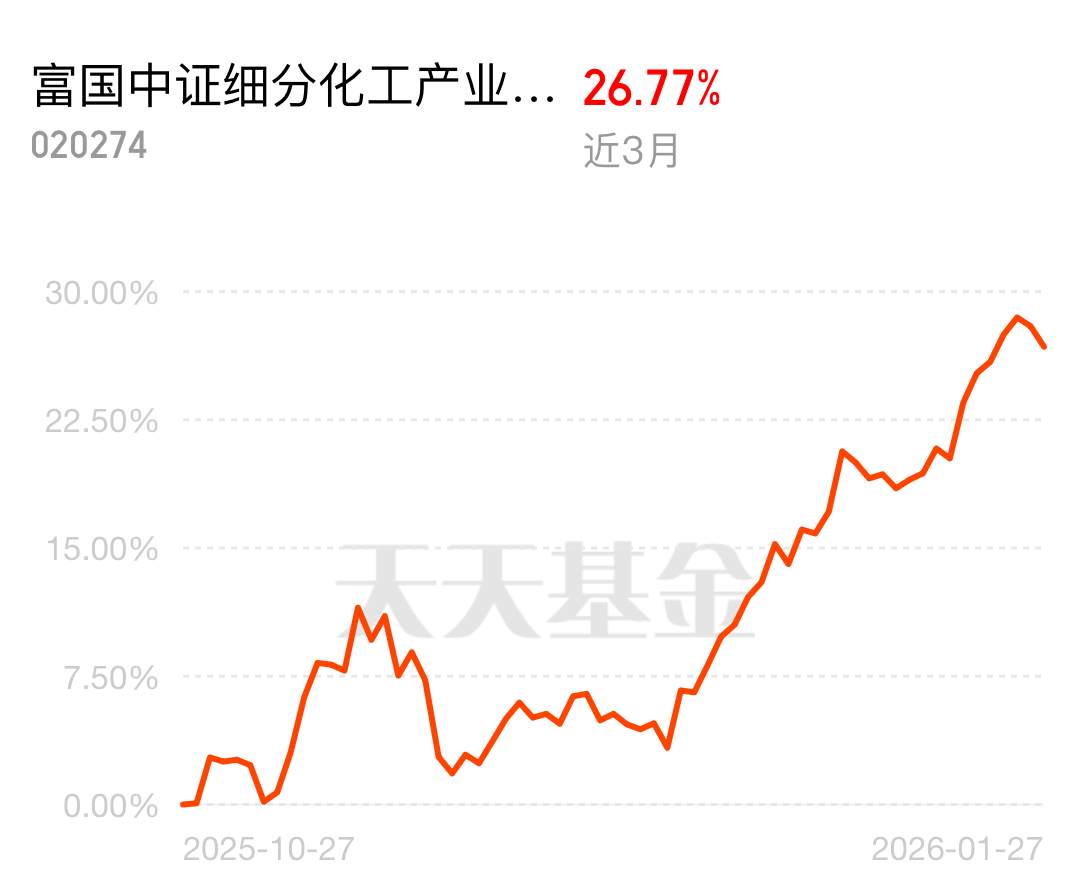 #继续新高!金价突破5200美元大关# 从犹豫到坚定,富国中证细分化工产业主题ETF联接C用表现说话。近3个月27%的涨幅,跑赢绝大多数同类型产品,背后是化工细分领域的真实回暖。化学原料、化学制品、化学纤维这些听起来“传统”的词,正在被技术壁垒和成本优势重新定义。如果你也相信结构性机会,不妨把它当作一个长期观察标的。