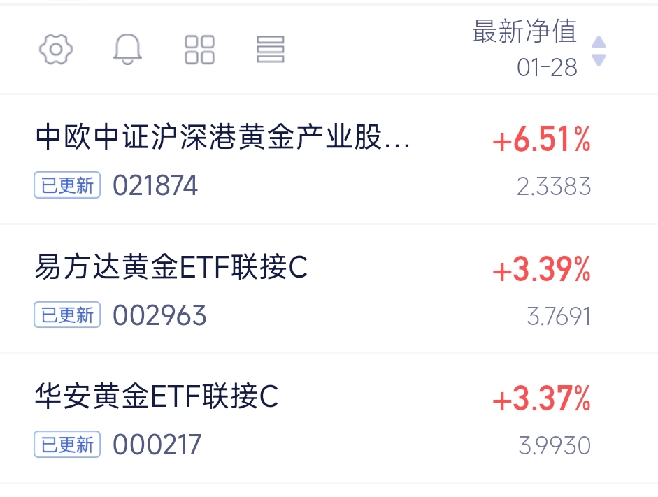 $中欧中证沪深港黄金产业股票指数发起C(OTCFUND|021874)$今天上涨6.51%