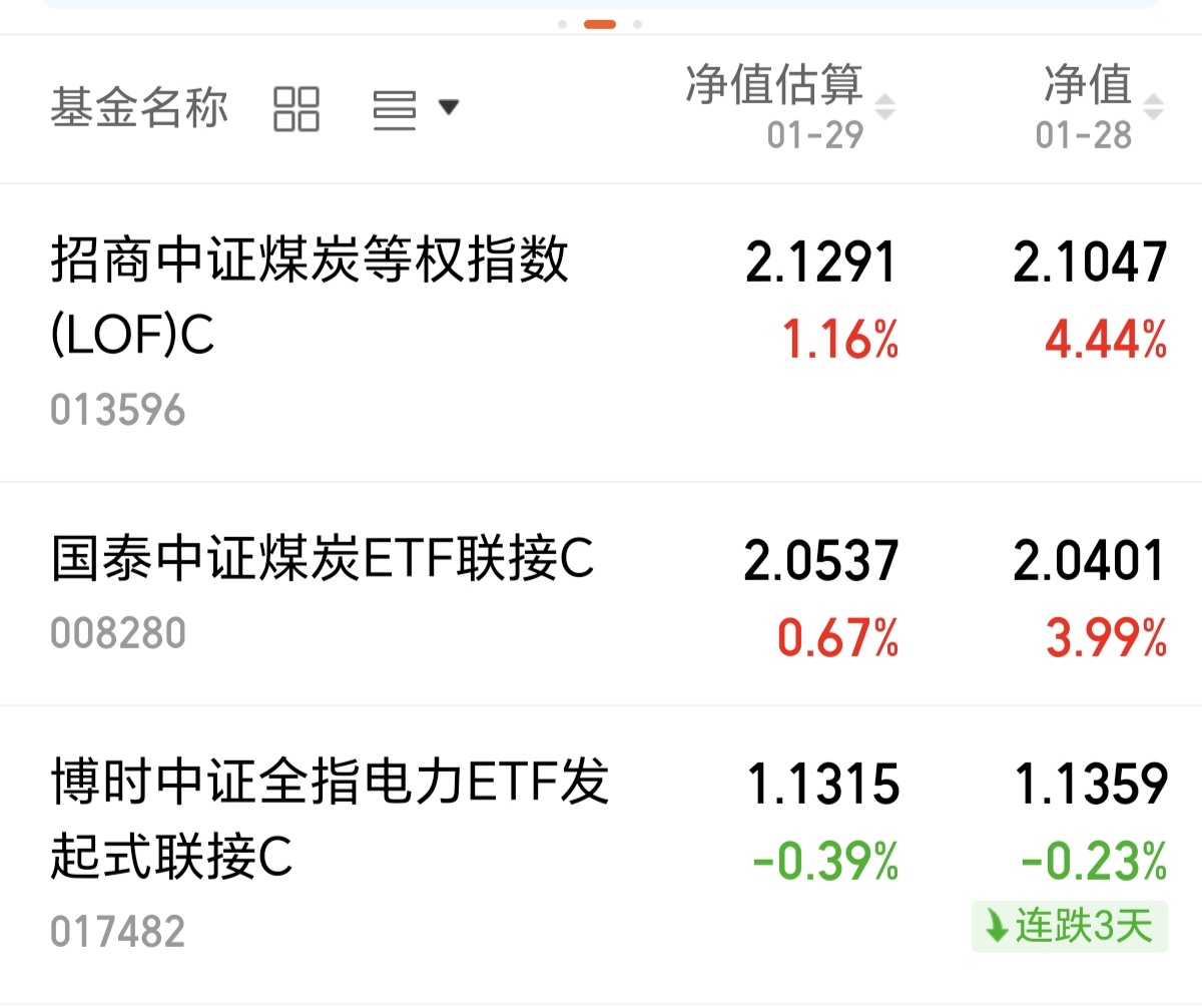 $招商中证煤炭等权指数(LOF)C(OTCFUND|013596)$昨日涨幅4.44%,上涨动力很是十足!
