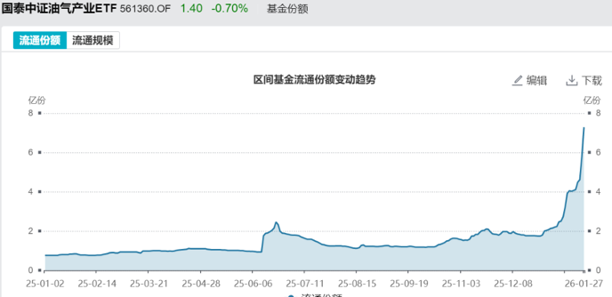 当前原油交易或更侧重供应脆弱性带来的溢价。但中长期看,油价或已经筑底,地缘扰动有望催化向上空间,油气产业有望受益于油价上行。此外,今年或迎来大宗商品超级周期,或有部分资金会选择高低切,流向石油等板块。投资者或可关注国泰中证油气产业ETF发起联接C(020406),其场内ETF为全市场最大的石油ETF(561360),正持续吸引资金流入。(石油ETF(561360)全市场最大是指截至2026年1月27日,石油ETF规模10.21亿,是标的指数为中证油气产业指数的ETF中流通规模最大的ETF。基金规模变化波动,不预示未来表现。)