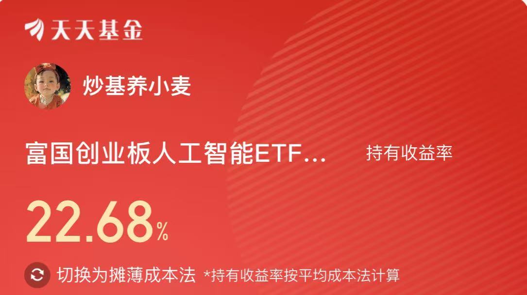 今天AI板块简直是全场最靓的仔!麦爸手里$富国创业板人工智能ETF发起式联接C(OTCFUND|024663)$跟踪的就是创业板AI指数,收益已经悄悄干到了22.68%,这躺赢的感觉,真香!