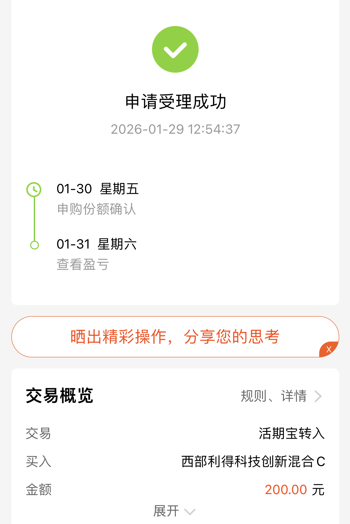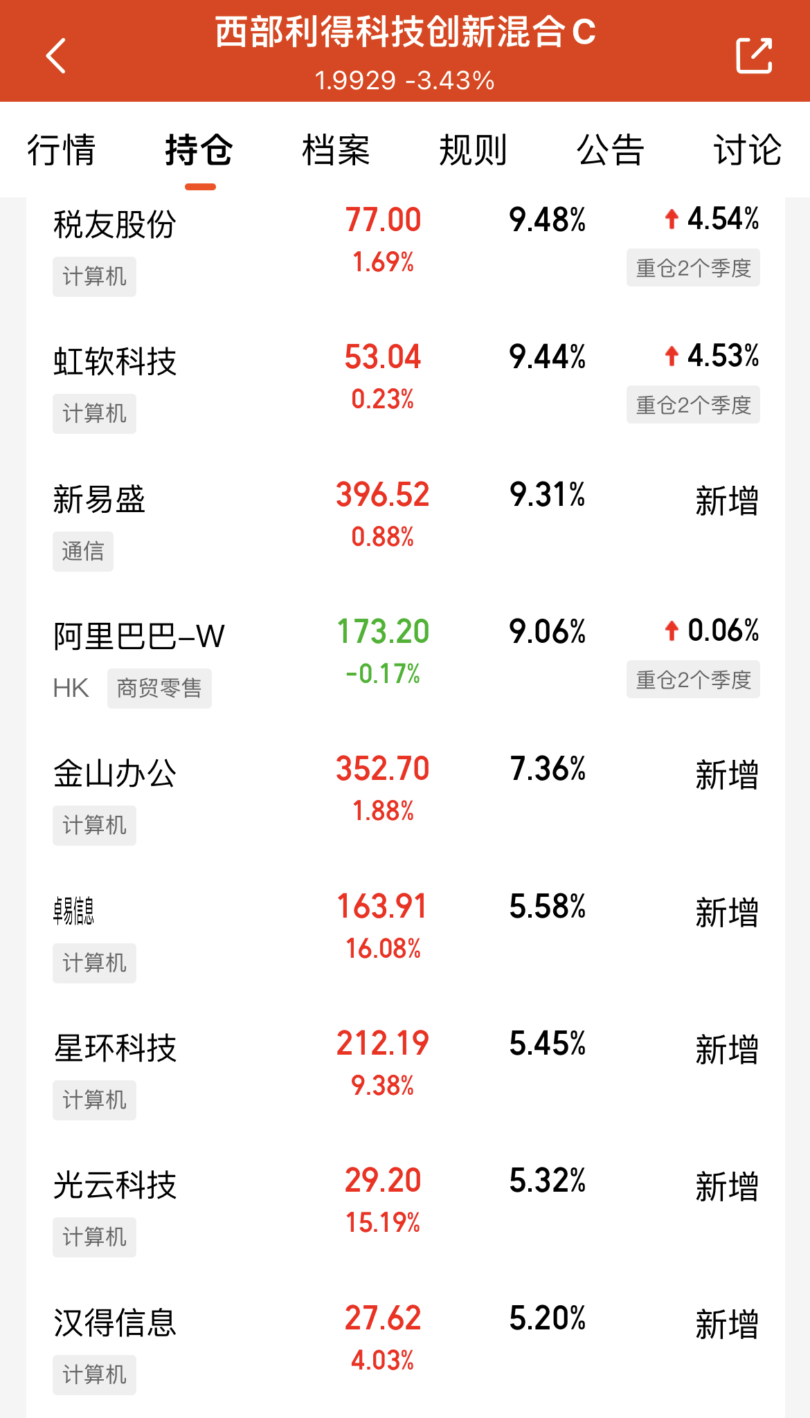今日大盘震荡轮动,$西部利得科技创新混合C(OTCFUND|020065)$太炸了!重仓股里有只直接涨超十几个点,其余也跟着发力,足见基金经理选股眼光超准!