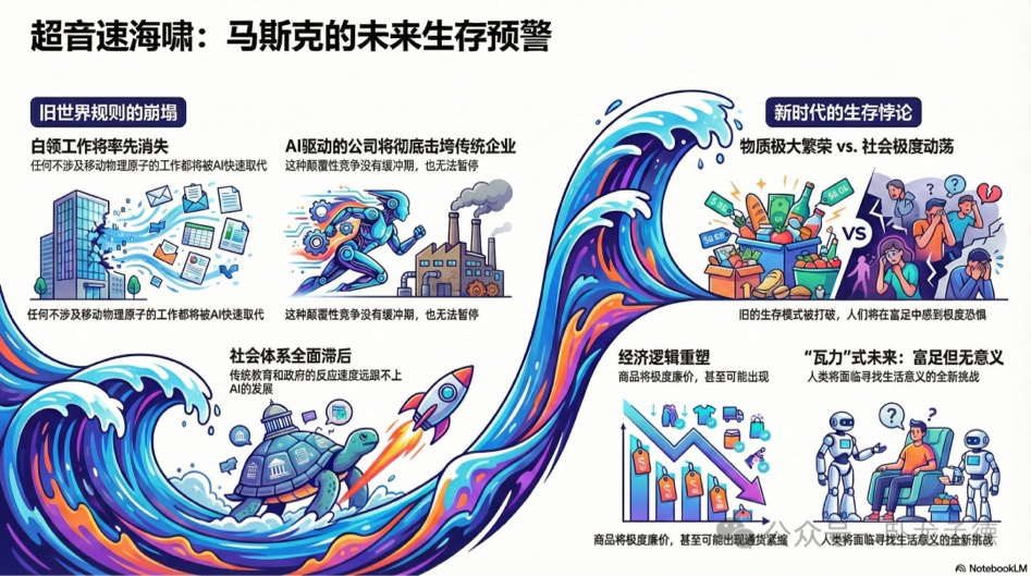 超音速海啸:AI和机器人(如Optimus)的结合将引发一场“超音速海啸”,劳动力将不再是限制生产的因素。