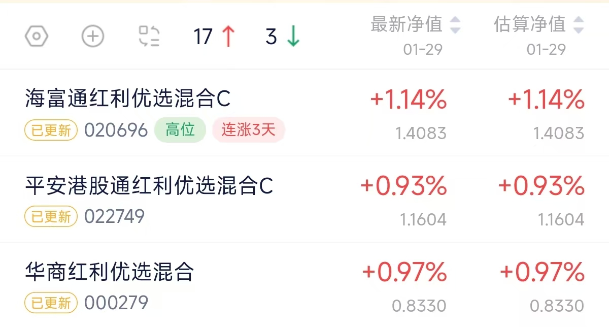 红利赛道防御性强,一直充当压仓宝石位置,只不过是行情好的时候容易被忽略,震荡的时候就是雪中送炭了,$海富通红利优选混合C(OTCFUND|020696)$今天上涨1.14%
