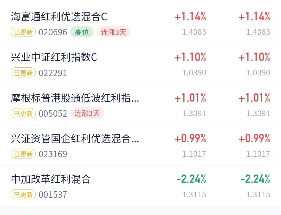我感觉最近的回暖走势还是蛮不错的,现如今的市场行情,我红利策略的信心还是蛮强的,我看海富-通红利优选混合C今天收涨1.14%,表现很香哦~