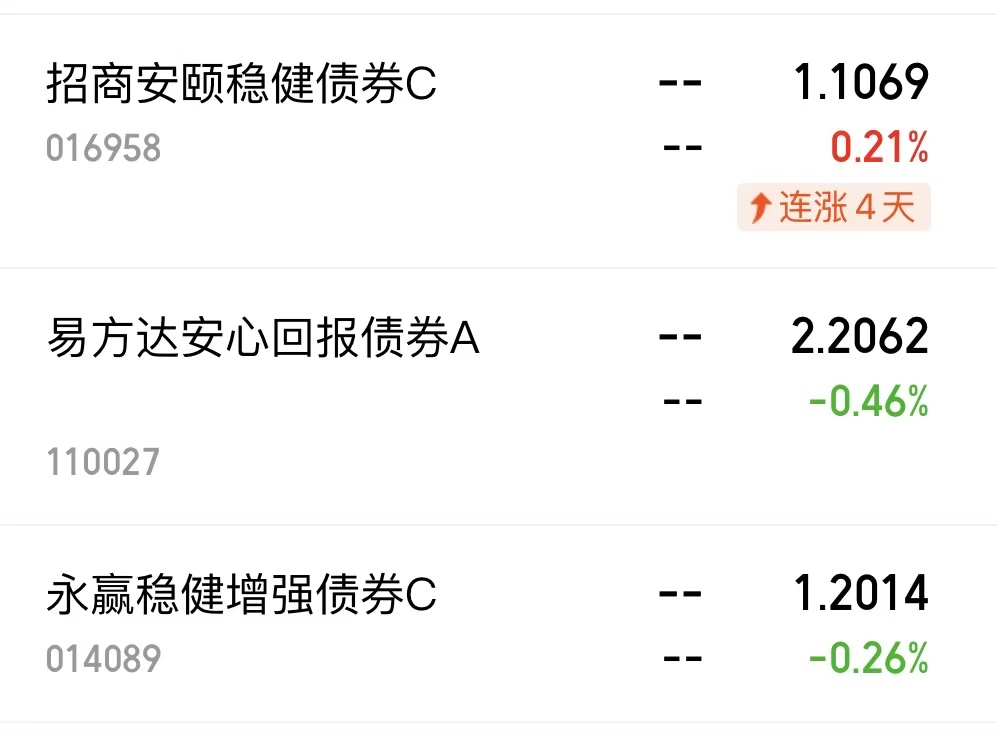 今天股债行情延续震荡,临近年关了,我还是继续看好固收+,$招商安颐稳健债券C(OTCFUND|016958)$昨天收21个蛋,还是不错的呢。