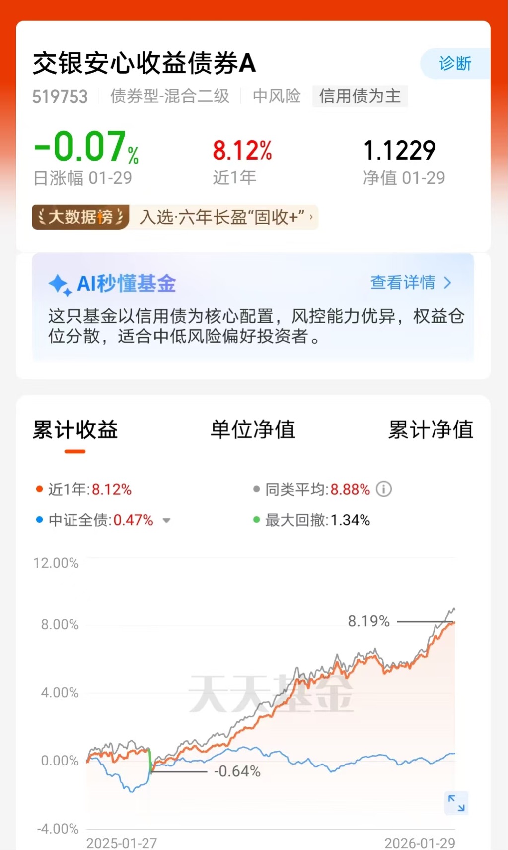 在监管鼓励发挥“固收+”产品优势的背景下,交银安心收益债券A以信用债获取基础收益