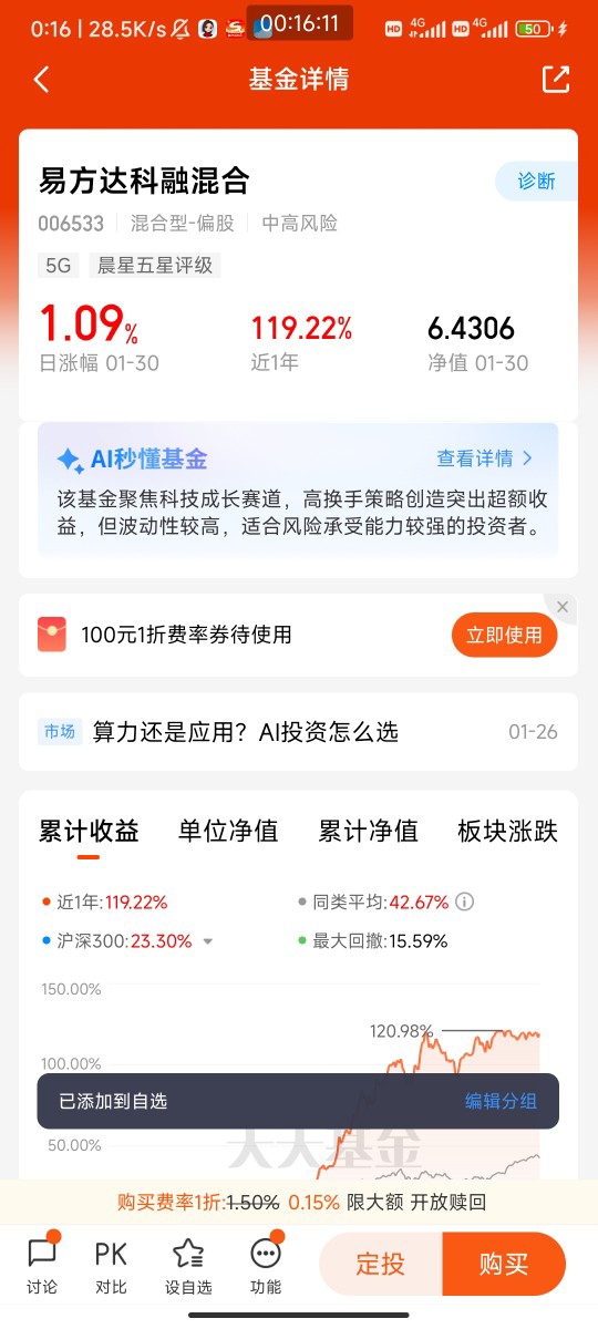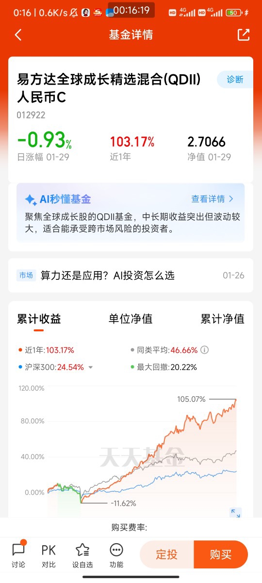 其中最让我难忘的,是对AI主题基金的逆向布局。2025年二季度,AI板块因短期涨幅过大出现回调,身边不少朋友纷纷赎回离场,但我没有跟风。我仔细研究了持仓基金的季报,发现其重仓的算力、光模块企业订单饱满,业绩增长确定性极强,只是市场情绪波动导致了估值回调。于是我不仅没有赎回,反而在低位分批加仓,这部分操作最终为我贡献了全年近20%的收益。这次经历让我深刻明白,超额收益往往藏在“别人恐惧时我贪婪”的逆向动作里,而支撑这种动作的,是对产业趋势的深度理解和对基金持仓的信任。