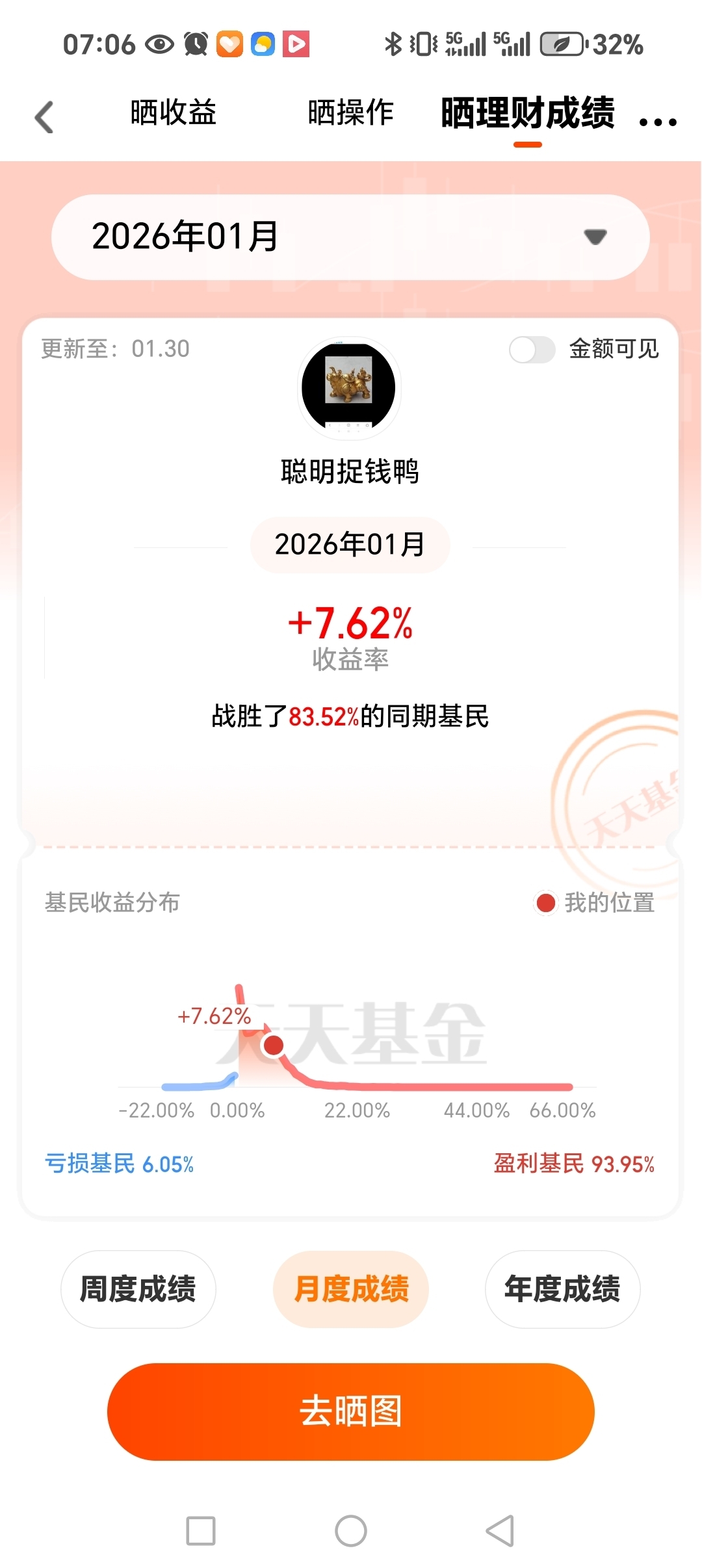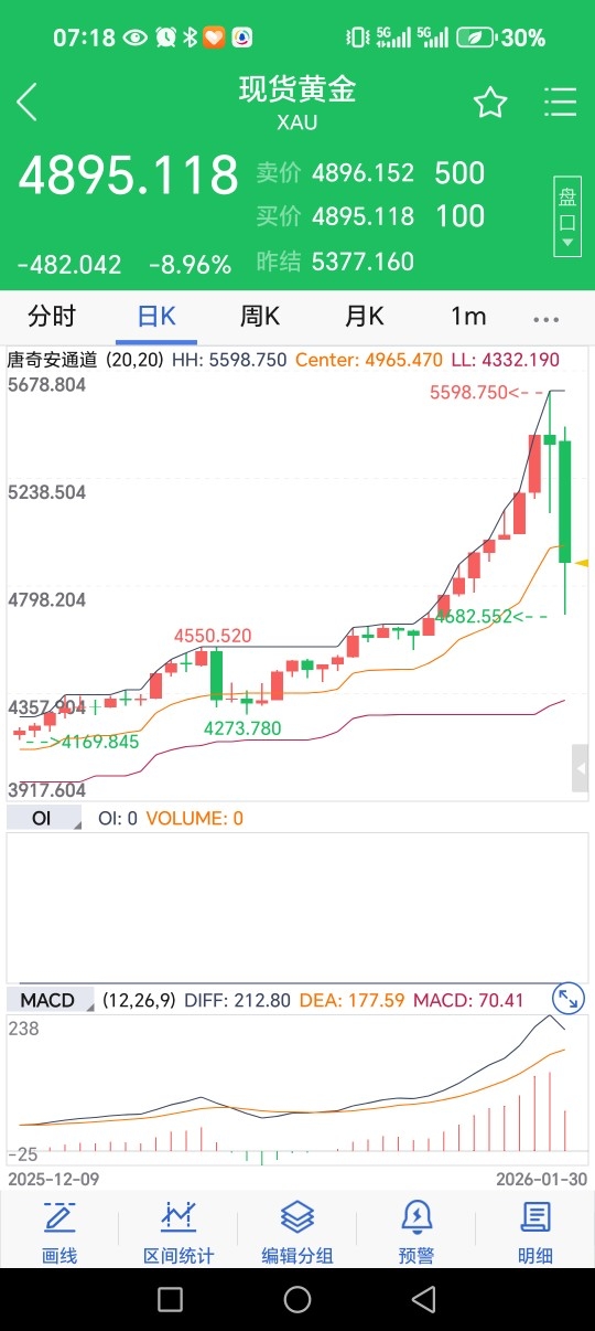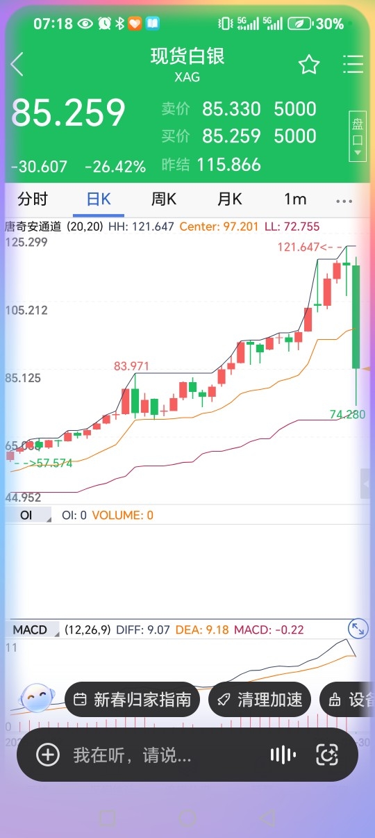昨天商品,股市齐跌。金银重挫,银价重挫30%以上,金价大跌12%在右,俗话说一金落,而万物生。金球去年商品之王黄金占用资金30万亿美元以上,黄金下跌,这些资金自然会寻找其它出路,这对于股市来说反而是好事。本月我的基金帐户战胜83·56%的基民,这是本人连续13个月战胜超过50%以上的基民,也是新年第一月战胜50%以上的基民,期待未来能继续有这样的业绩!